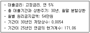 A씨는 원리금균등분할상환조건으로 1억원을 대출받았다. 은행의 대출조건이 다음과 같을 때, 대출 후 5년이 지난 시점에 남아있는 대출잔액은? (단, 만원 단위 미만은 절사하며, 주어진 조건에 한함)