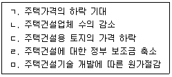신규주택시장에서 공급을 감소시키는 요인을 모두 고른 것은? (단, 신규주택은 정상재이며, 다른 조건은 동일함)