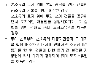 甲에게 법정지상권 또는 관습법상 법정지상권이 인정되는 경우를 모두 고른 것은? (다툼이 있으면 판례에 따름)