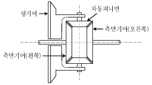 그림과 같이 차동피니언 잇수 24개, 측면기어 잇수 36개인 차동기어 장치에서 왼쪽 측면기어의 회전속도가 40 [rpm]이고, 오른쪽 측면 기어의 회전속도가 50 [rpm]일 때, 차동피니언의 회전속도[rpm]는?