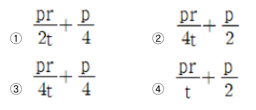 두께 t, 구 안쪽 반지름이 r인 얇은 벽의 구형 압력용기 안쪽 표면에서 압력 p에 의해 발생하는 면외(out-of-plane) 최대 전단응력은?
