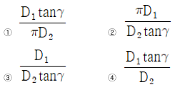 웜(worm)과 웜휠(worm wheel)에서 웜의 리드각이 γ, 웜의 피치원 지름이 D1, 웜휠의 피치원 지름이 D2이다. 웜의 회전속도를 n1, 웜휠의 회전속도를 n2로 할 때, n2/n1는?