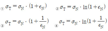 체적불변조건을 이용하여, 진응력(σT)을 공칭응력(σN)과 공칭변형률(εN)로 바르게 표현한 것은?