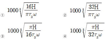 비틀림 상태에 있는 중실축이 각속도 ω[rad/s]로 회전하며 동력 H[W]를 전달하기 위한 최소 지름 d[mm]는? (단, 허용전단응력은 τa[Pa]이다)