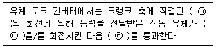 다음은 유체 토크 컨버터(fluid torque converter)의 작동원리에 대한 설명이다. ㉠∼㉢의 들어갈 말을 옳게 짝 지은 것은? (순서대로 ㉠, ㉡, ㉢)