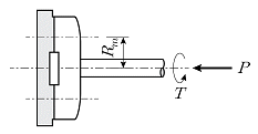 단판 원판 브레이크를 이용하여 회전하는 축을 제동하려고 한다. 브레이크를 축방향으로 미는 하중 P=100N, 원판 브레이크 접촉면의 평균 반지름 Rm=25mm, 마찰계수 μ=0.1일 때, 제동할 수 있는 최대 토크 T[N·mm]는? (단, 축방향 힘은 균일압력조건, 토크는 균일마모조건으로 한다.)