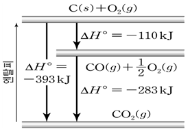 다음 그림은 C(s)와 O2(g)로부터 1 mol의 CO2(g)가 생성되는 과정의 엔탈피 변화를 나타낸 것이다.