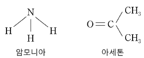 다음은 암모니아와 아세톤의 구조식이다.