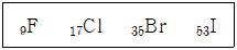 다음은 할로젠 원소(17족)를 원자 번호순으로 나타낸 것이다.