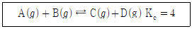 다음은 A(g)와 B(g)가 반응하여 C(g)와 D(g)가 생성되는 반응의 화학 반응식과 TK에서 농도로 정의되는 평형상수(Kc)이다.