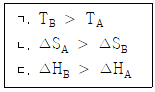 A와 B의 정상 끓는점은 각각 TA K과 TB K이고, TB K에서 △GA < 0 이며, Tx > TB인 Tx K에서 △GA = △GB 이다. 이에 대한 설명으로 옳은 것만을 <보기>에서 모두 고른 것은? (단, 온도에 따른 △H와 △S의 변화는 무시한다.)
