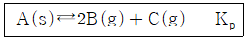 다음은 고체 A가 분해되는 반응의 화학 반응식과, TK에서 압력으로 정의되는 평형 상수(Kp)이다.