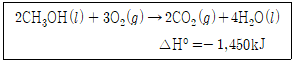 25℃, 1 atm에서 이 반응식을 따라 메탄올 96g 이 완전 연소될 때의 △H[kJ]는? (단, 메탄올의 몰질량은 32g/mol이다.)