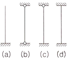 그림과 같은 기둥에서 유효좌굴길이가 가장 긴 것부터 순서대로 나열한 것은?