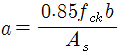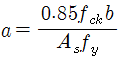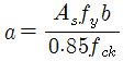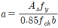 강도설계법에서 단철근 직사각형의 등가 직사각형의 응력분포의 길이 (a)를 구하는 공식은? (단, AS : 인장철근량, ƒy : 철근의 설계기준항복강도,ƒck : 콘크리트의 설계기준강도, b: 단면의 폭)