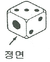 그림에서와 같이 주사위를 바라보았을 때 우측면도를 바르게 표현한 것은? (단, 투상법은 제3각법이며, 물체의 모서리 부분의 표현은 무시한다.)
