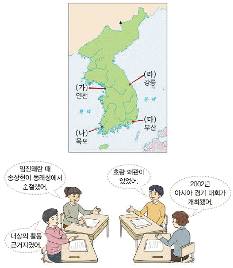 학생들이 공통으로 이야기하고 있는 지역을 지도에서 옳게 찾은 것은? [2점]