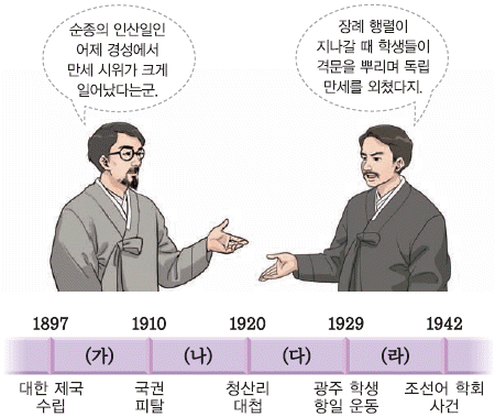 다음 대화가 이루어진 시기를 연표에서 옳게 고른 것은? [3점]