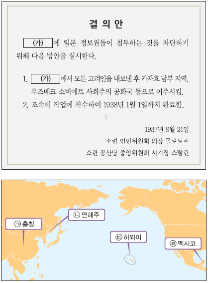 (가)에 해당하는 지역을 지도에서 옳게 찾은 것은? [2점]