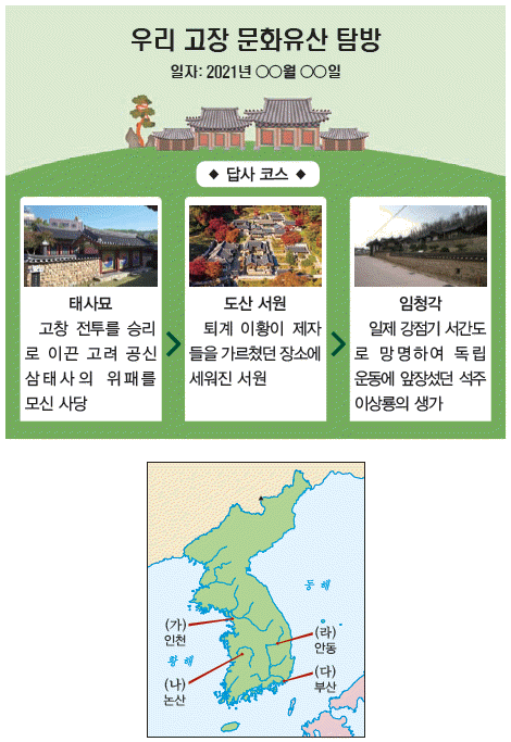 다음 답사가 이루어진 지역을 지도에서 옳게 고른 것은? [2점]