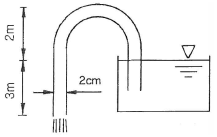그림과 같은 사이펀을 통하여 나오는 물의 질량 유량은 약 몇 ㎏/s인가? (단, 수면은 항상 일정하다.)