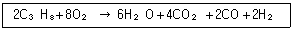 밀폐된 용기 내에 1atm, 37℃로 프로판과 산소의 비율이 2 : 8로 혼합되어 있으며 그것이 연소하여 아래와 같은 반응을 하고 화염온도는 3000K가 되었다면 이 용기 내에 발생하는 압력은 약 몇 atm인가?