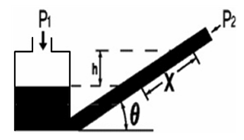 경사관 압력계에서 P1의 압력을 구하는 식은? (단, γ : 액체의 비중량, P2 : 가는 관의 압력, θ : 경사각, X : 경사관 압력계의 눈금이다.)