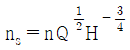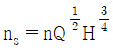 펌프의 회전수를 n[rpm], 유량을 Q[m3/min], 양정을 H[m]라 할 때 펌프의 비교회전도 ns를 구하는 식은?