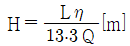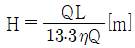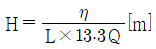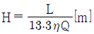 수차의 효율을 η, 수차의 실제 출력을 L[PS], 수량을 Q[m3/s]라 할 때, 유효낙차 H[m]를 구하는 식은?