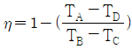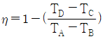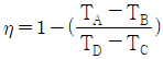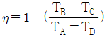 다음은 Air-standard otto cycle의 P-V diagram이다. 이 cycle의 효율(η)을 옳게 나타낸 것은? (단, 정젹열용량은 일정하다.)