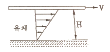 두 개의 무한히 큰 수평 평판 사이에 유체가 채워져 있다. 아래 평판을 고정하고 윗 평판을 V 의 일정한 속도로 움직일 때 평판에는 τ 의 전단응력이 발생한다. 평판 사이의 간격은 H 이고, 평판사이의 속도분포는 선형(Couette 유동)이라고 가정하여 유체의 점성계수 μ를 구하면?
