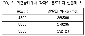 298.15K, 0.1MPa 상태의 일산화탄소(CO)를 같은 온도의 이론공기량으로 정상유동 과정으로 연소시킬 때 생성물의 단열화염 온도를 주어진 표를 이용하여 구하면 약 몇 K 인가? (단, 이 조건에서 CO 및 CO2의 생성엔탈피는 각각 –110529 kJ/kmol, -393522 kJ/kmol 이다.)