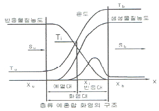 그림은 층류예혼합화염의 구조도이다. 온도곡선의 변곡점인 Ti를 무엇이라 하는가?