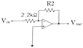 다음 회로에서 전압 이득이 –100이 되기 위한 R2값은 얼마인가?