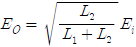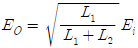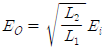 그림에서 입력전압 Ei, 출력전압을 EO라 하고 1,2차 코일 L1, L2의 저항분을 무시하면 EO의 값은?