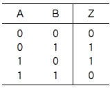 다음 진로표(truth table)가 나타내는 회로는? (단, A,B는 입력이고, Z는 출력이다.)