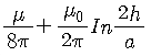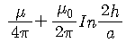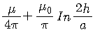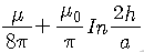 반지름 a(m)인 전선을 지상 h(m) 높이의 지면에 나란하게 가설했을 때의 단위 길이당 자기유도계수 L(H/m)은? (단, 도선의 투자율은 μ(H/m)이다.)