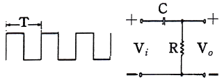 그림과 같은 회로의 이력전압(Vi)으로 구형파를 가할 때 출력전압(Vo)의 파형으로 옳은 것은? (단, T≫RC일 경우이다.)