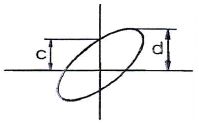 오실로스코프 상에서 그림과 같은 도형을 얻었다. c=0.5 이고, d=1 이라면 위상차(θ)는?