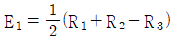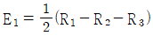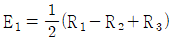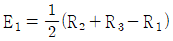 다음 콜라우시 브리지(Kohalraush Bridge)에서 E1과 E2 사이의 저항을 R1(Ω), E2와 E3 사이가 R2(Ω), E3와 E1 사이가 R3(Ω) 이라면 E1은? (단, E1은 피 측정 접지저항, E2, E3는 보조 접지이다.)
