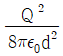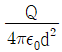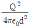 공기 중에 무한 평면 도체로부터 거리 d(m)인 곳에 점전하 Q(C)가 있을 때, Q와 무한 평면도체 간에 작용하는 힘은 몇 N 인가?