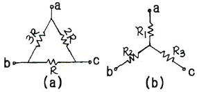 그림 (a)와 같은 △결선과 그림 (b)와 같은 Y결선을 등가로 두었을 때 R1의 저항은?