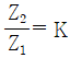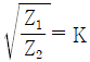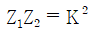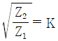 정 K형 여파기(constant K-type filter)에 있어서 임피던스 Z1, Z2는 어떻게 나타내는가? (단, K는 공칭 임피던스라 한다.)