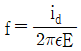 공기 중에서 E(V/m)의 전계를 id(A/m2)의 변위전류로 흐르게 하려면 주파수 f(Hz)는?