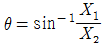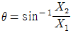 어느 회로망의 입력단자 및 출력단자의 전압을 각각 오실로스코프의 수직, 수평 단자에 인가해서 화면상의 그림과 같은 도형이 나타났다. 위상각(θ)을 나타낸 식으로 옳은 것은?