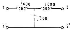 다음 T형 회로의 1-1′ 단자에서 본 영상 임피던스는?