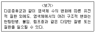 <보기>처럼 유전적 질환이나 암 발생과 관계될 수 있는 염색체 구조변화의 예로 옳지 않은 것은?