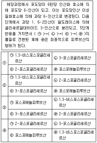 <보기>의 해당과정에 대한 설명에서 ㉠~㉣에 해당하는 물질을 순서대로 바르게 나열한 것은?