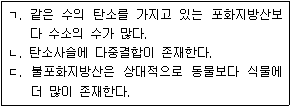지방(fat)은 글리세롤(glycerol)과 지방산으로 이루어진 지질(lipid)의 한 종류이다. 지방산은 불포화지방산(unsaturated fatty acid)과 포화지방산(saturated fatty acid)으로 나누어진다. <보기>에서 불포화지방산에 대한 설명으로 옳은 것을 모두 고른 것은?