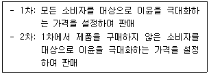 독점기업 A의 한계비용은 10이고 고정비용은 없다. A기업 제품에 대한 소비자의 역수요함수는 P = 90-2Q 이다. A기업은 내부적으로 아래와 같이 2차에 걸친 판매 전략을 채택하였다.